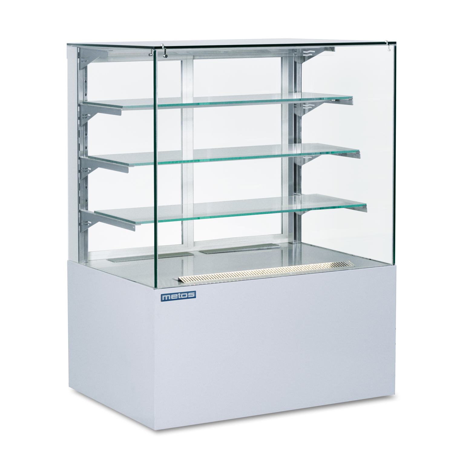 Stylish Metos Cube II 1000 transparent glass display for full-service