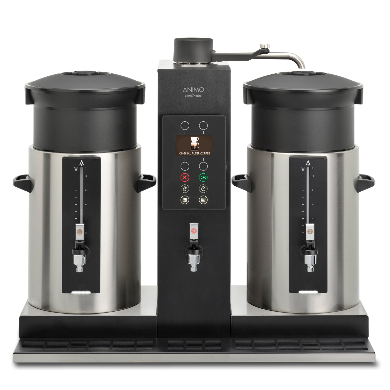 – the amount of brewed filtered coffee can be selected in litres or