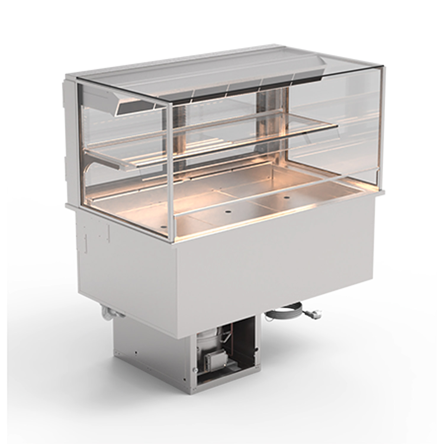 The display is equipped with air cooled chilling, digital temperature