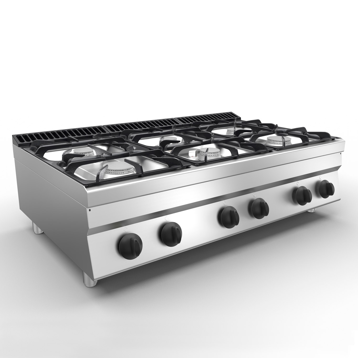 – Gas range hobs with 6 x 7,7 kW burners