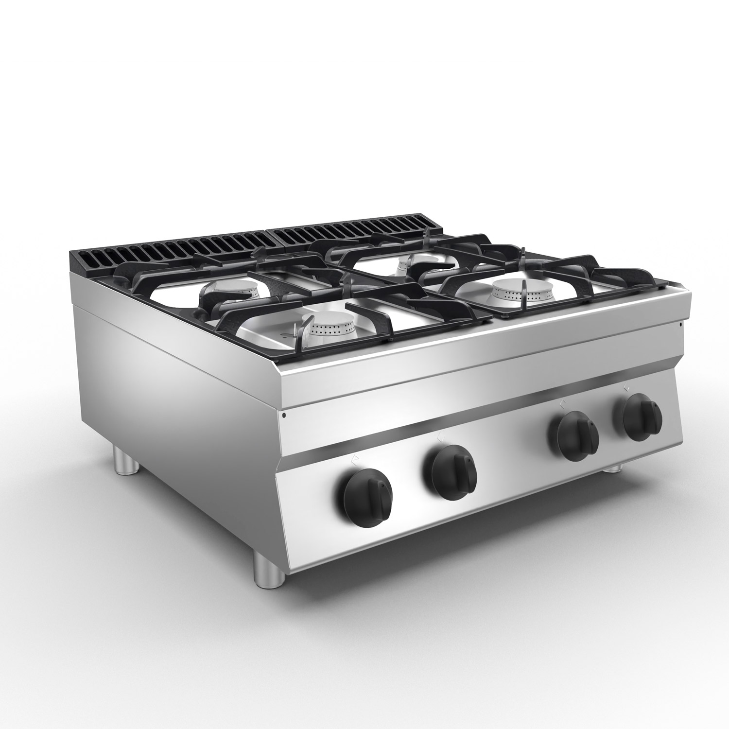 – All gas range hobs with 7,7 kW burners (4pcs)