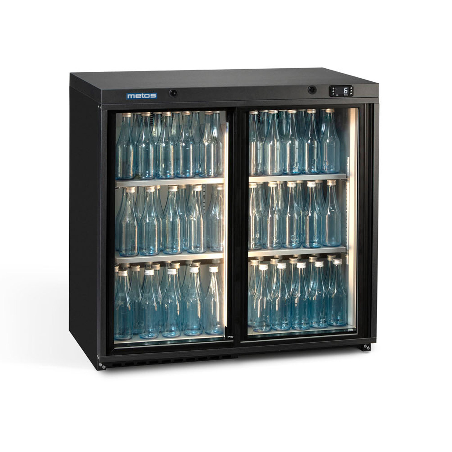 The Metos Maxiglass MG3/250SD glass sliding door cooler has two