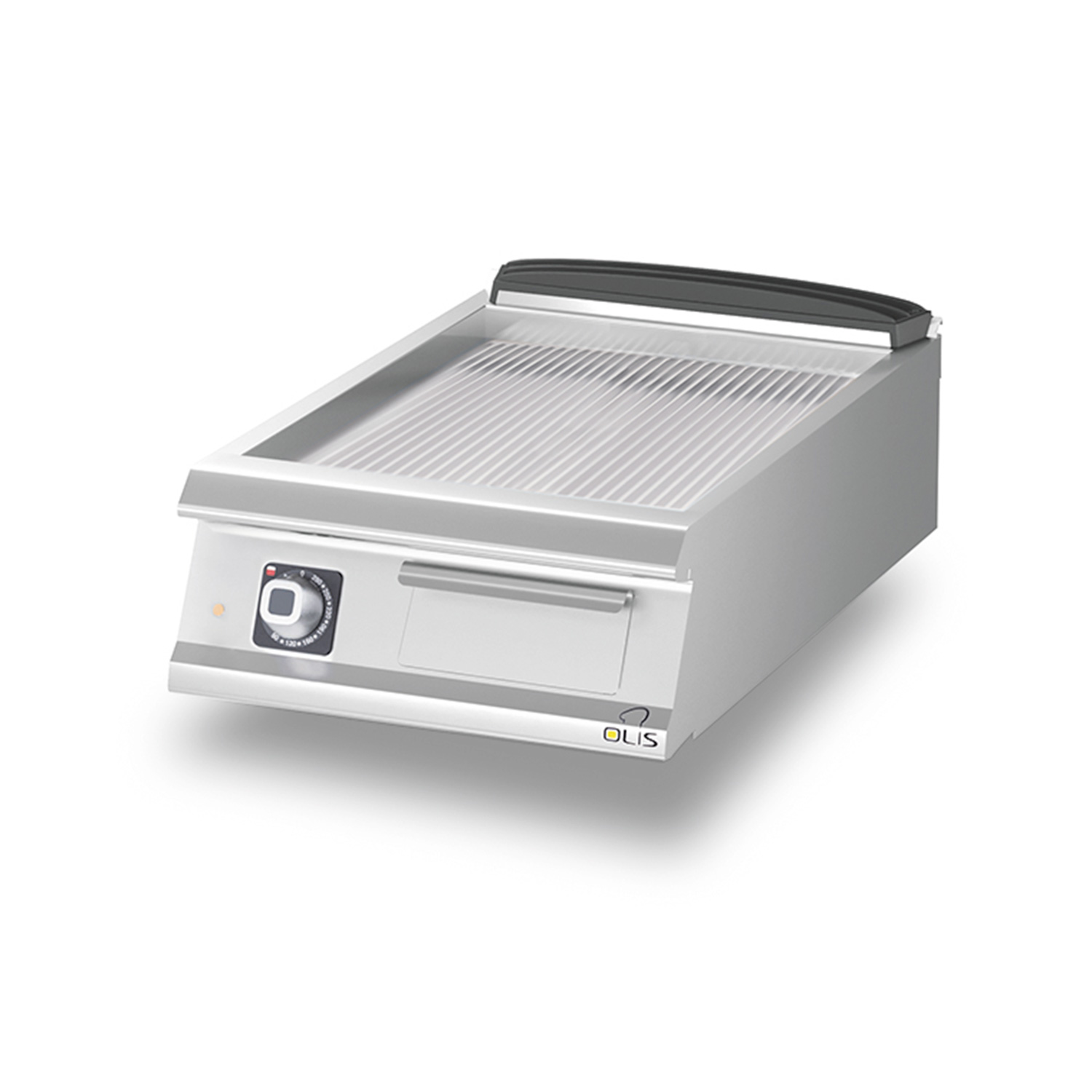 grooved steel surface.The grill has the temperature of which can be