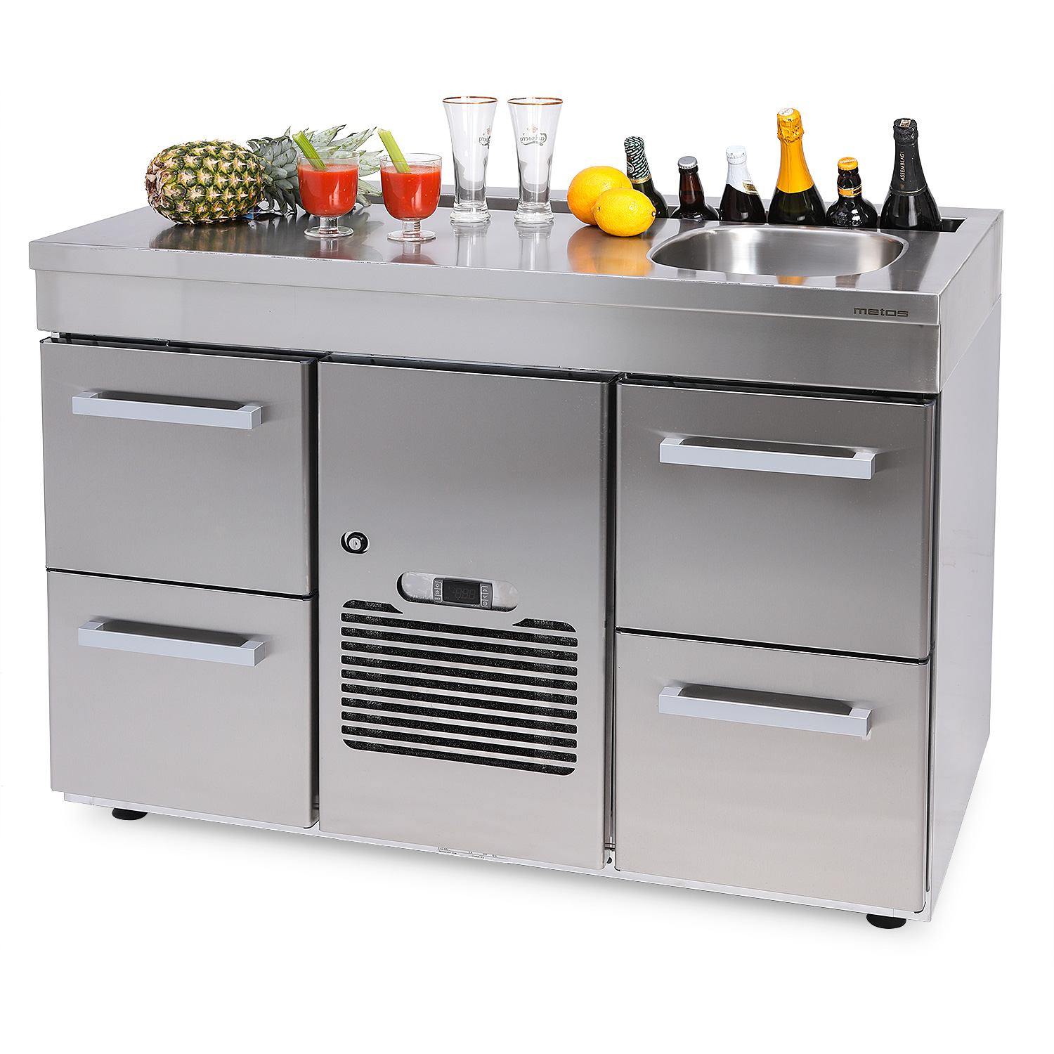 – four cold drawers for bottles and cans