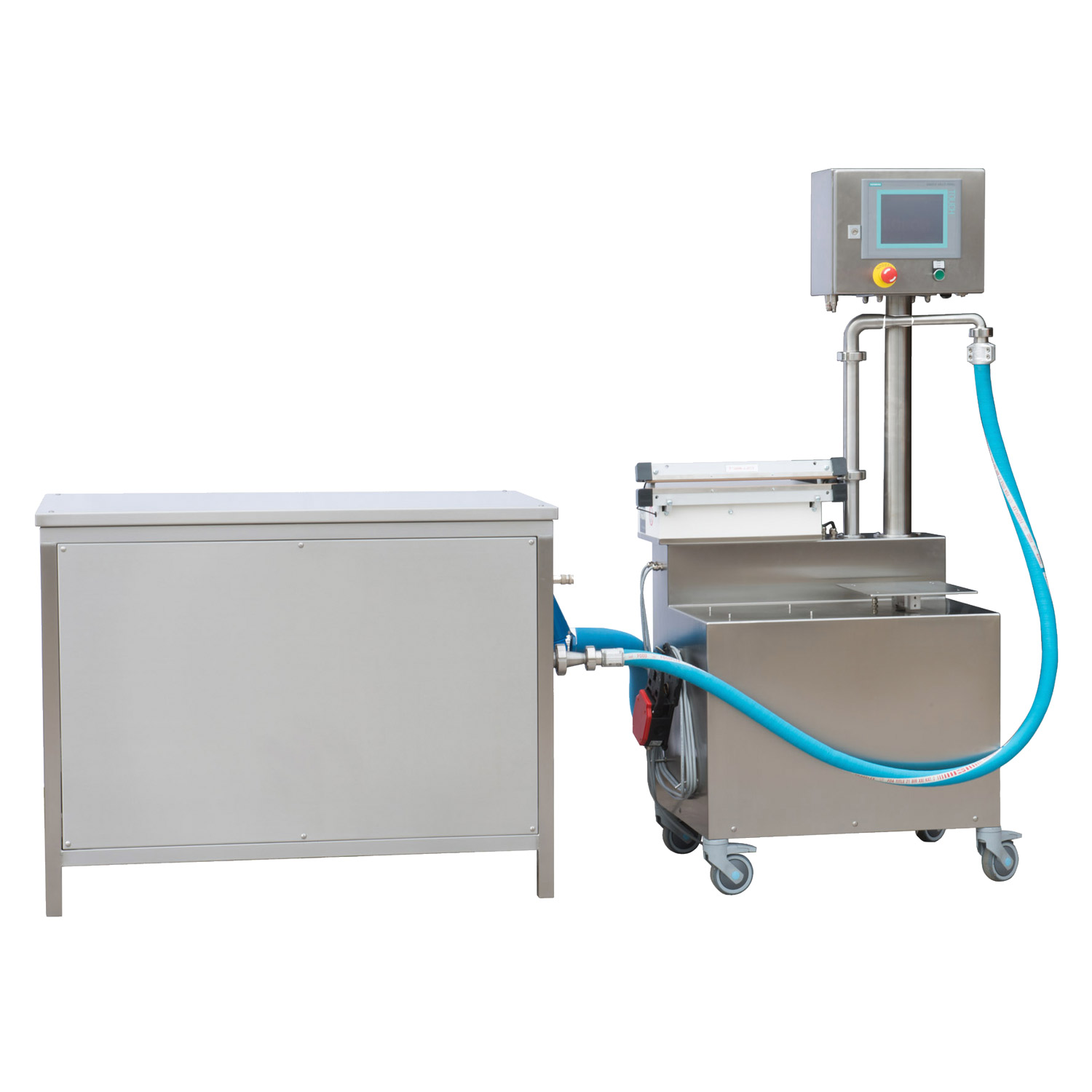 There are three Hot Fill -pump models available: Hot-Fill Dos 1, Hot-Fill Dos 2 and Hot-Fill Dos 3. In the Dos 3 -automatic system, the user does not have to be in direct contact with hot foods that are close to 90 Celsius degrees. The automatic bag-packing unit seals the bags once they are filled. Furthermore, the need for lifting products over long distances is reduced since the ready-packaged dishes are transported from the filling station to the operator via a small conveyor belt.