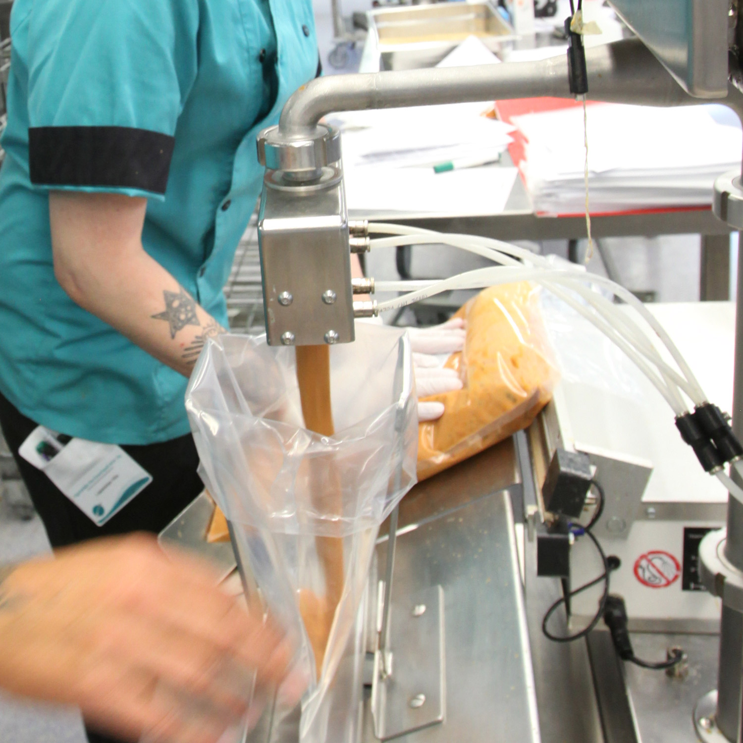 - Portions directly from the pot into Hot-Fill -bags or containers