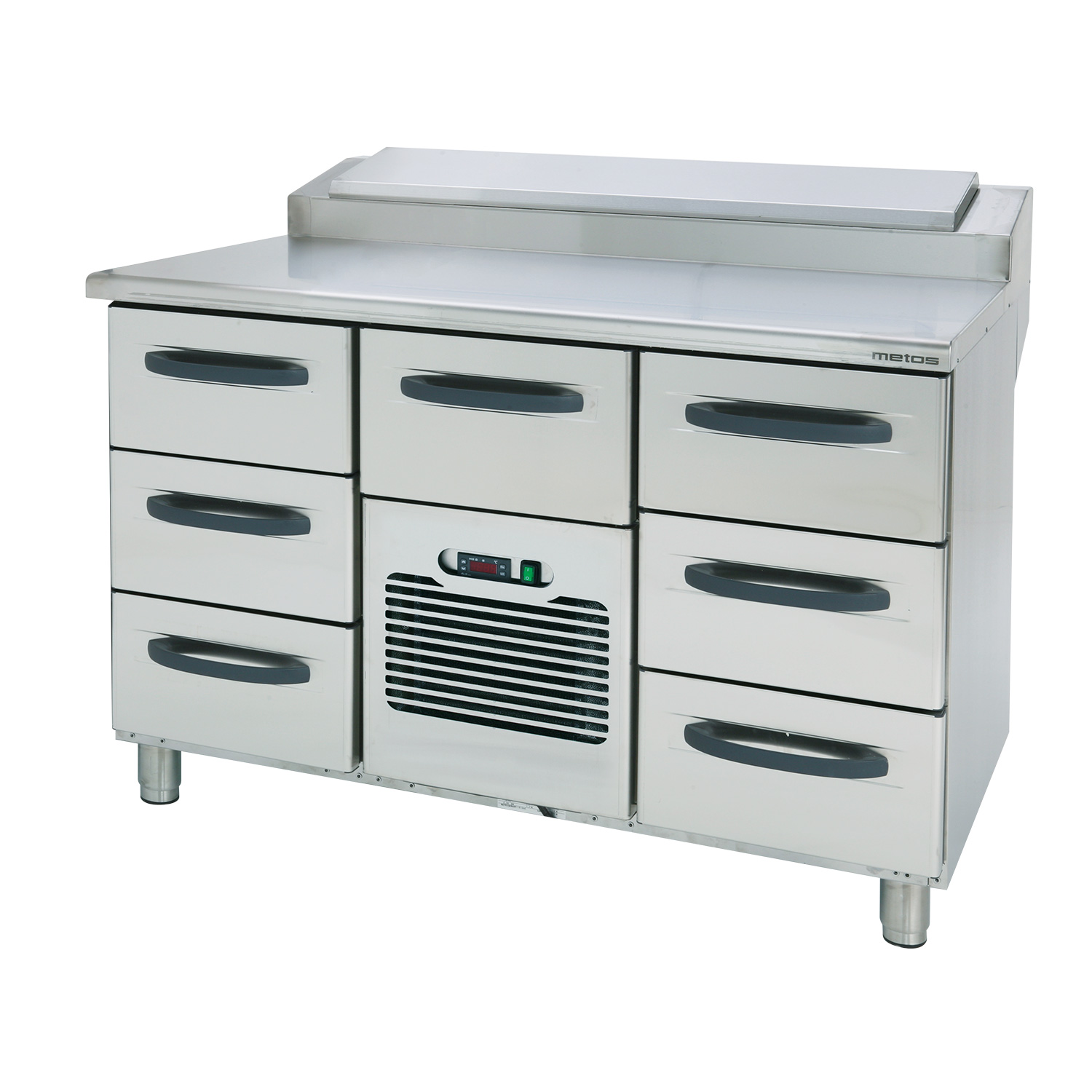 – pizza table with heightened cold basin and cold drawers