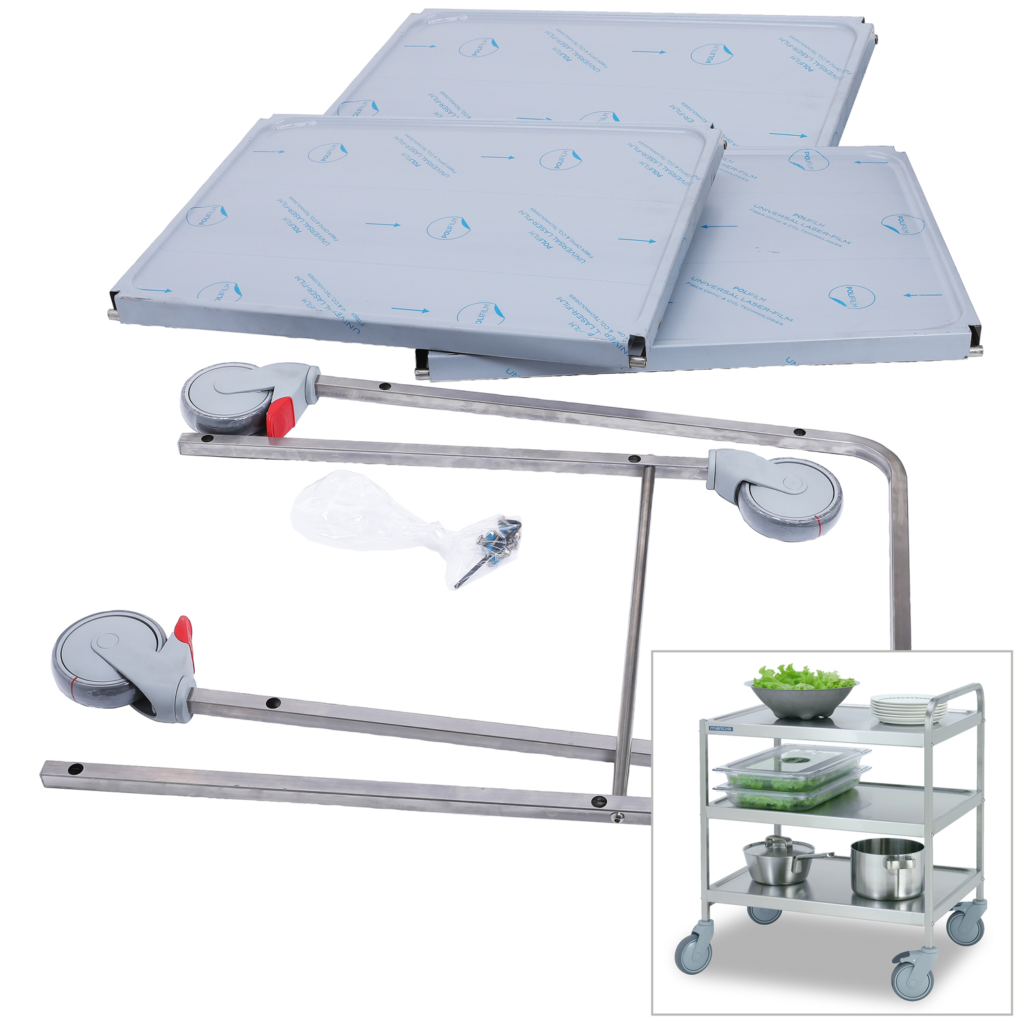 – Ball bearing wheels Ø 125 mm, two with brakes