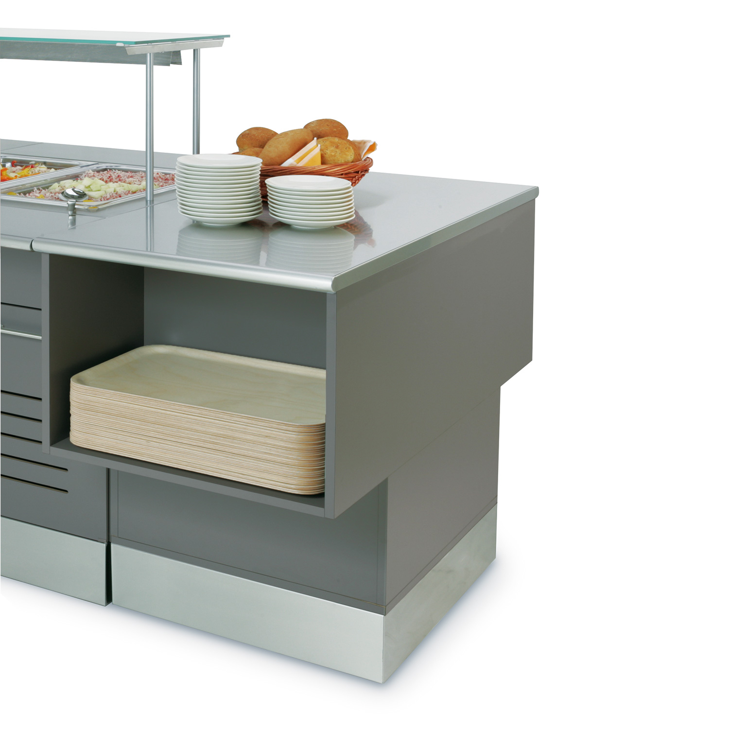 – unit that starts food serving line and has a capacity for about 2 x 108 trays, that are about 4 mm thick or about 2 x 61 tray, tha